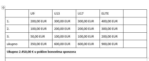 STARTNINA: Za kategorije U17 i mlađe je 5€, 10€ iznosi za sve ostale. Startnina uključuje majicu i bon za hranu.